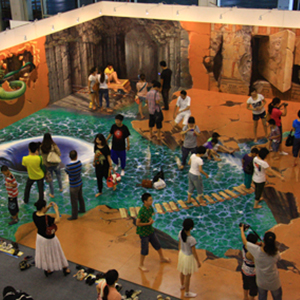 地面互動投影系統采用懸掛在頂部的投影設備把影像效果投射到地面,當參訪者走至投影區域時,通過系統識別,參訪者可以直接使用雙腳或動作與投影幕上的虛擬場景進行交互,各種 ……